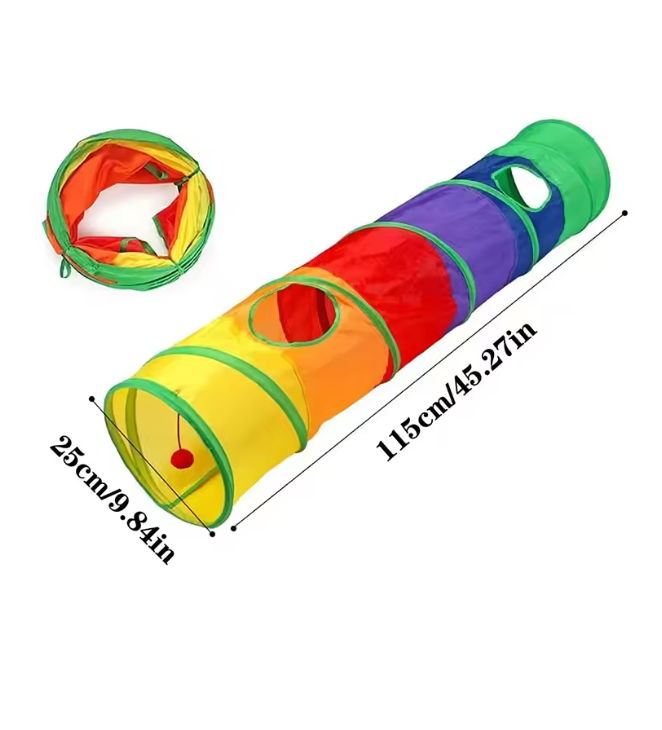 Get ready for endless feline fun with our multi-coloured Purr-fect Hide & Seek Tunnel. Designed to satisfy your cat’s curiosity, playfulness, and love for adventure. Whether your kitty loves to dart through tunnels at lightning speed, pounce on hidden “prey,” or simply lounge in a cosy hideaway, this tunnel delivers non-stop entertainment.